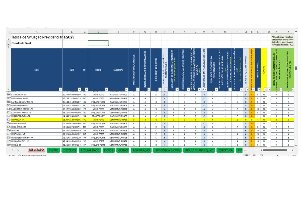 O Indicador de Situação Previdenciária atua como ferramenta de estímulo aos RPPS na busca do aprimoramento de modelos de gestão. Ele avalia vários aspectos do RPPS, atribuindo notas a fatores relacionados a três pilares: Gestão e Transparência, Situação Financeira e Situação Atuarial.